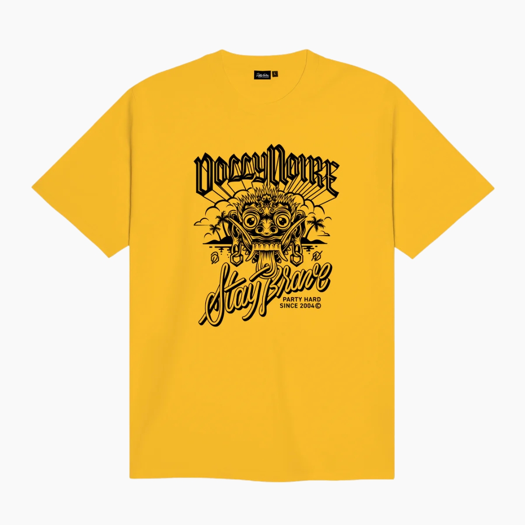 Scopri la forza dello spirito balinese con la Tee DLYNR Bali Mask Giallo.