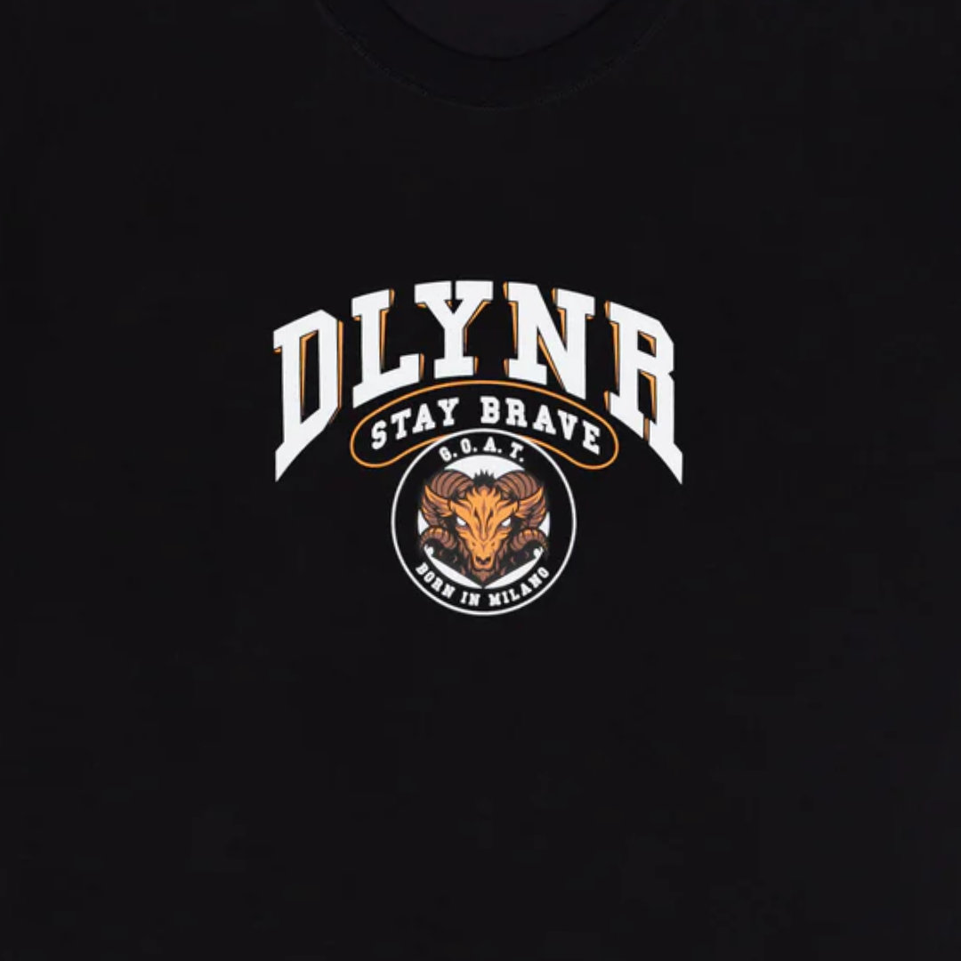 La Tee DLYNR Goat Front Badge รจ un capo dallo stile unico e inconfondibile, perfetto per coloro che cercano di distinguersi dalla massa.