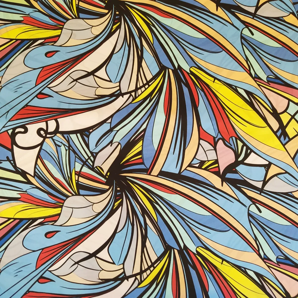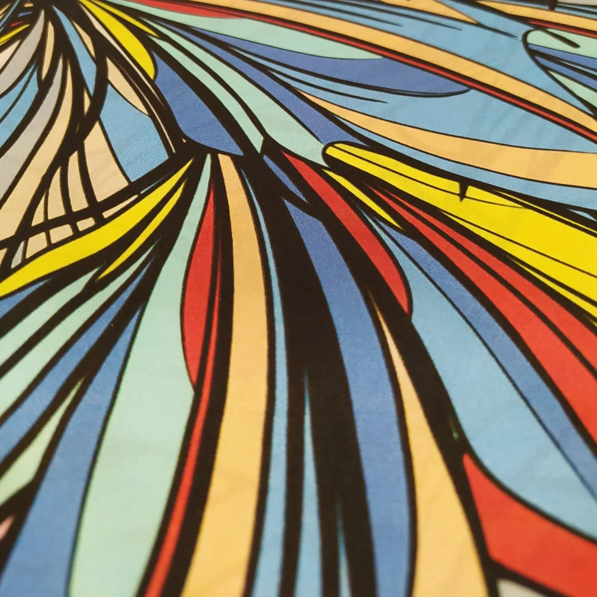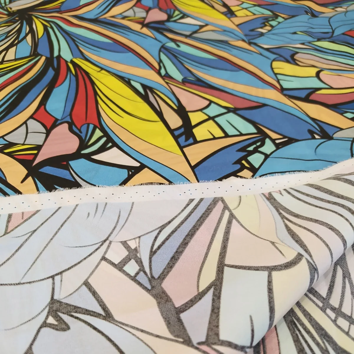 Tessuto raso di seta pura a fantasia geometrica multicolor