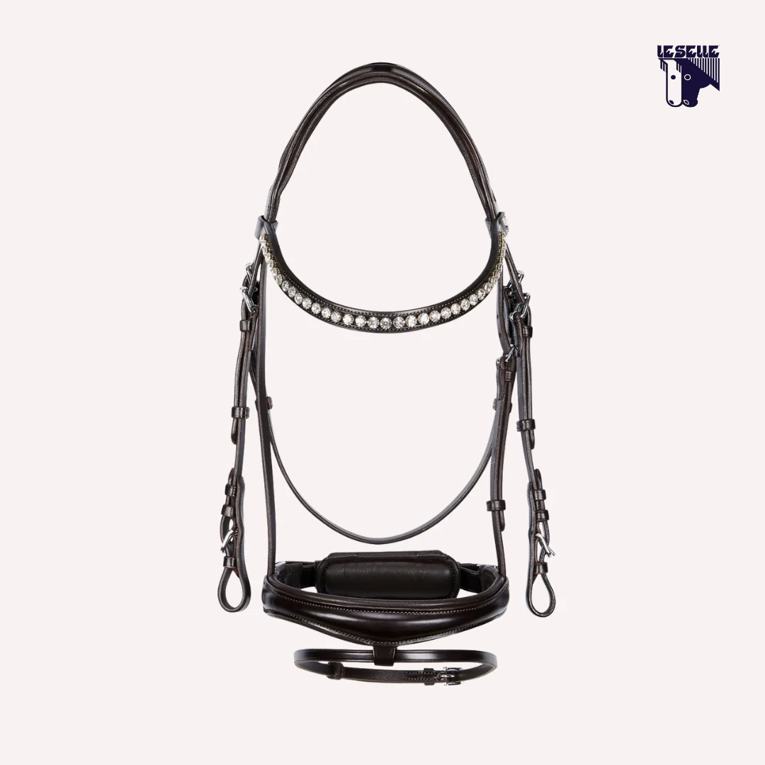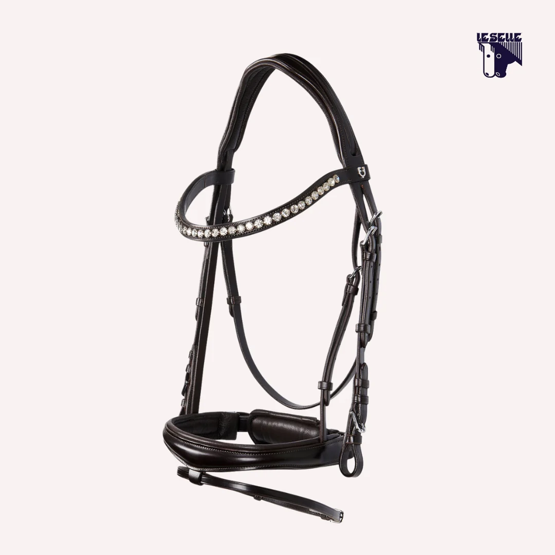Testiera Equestro Crank Cuoio italiano di prima scelta Sovracapo anatomico e imbottito Capezzina imbottita con chiusura pull-back Frontalino con cristalli bianchi incastonati
