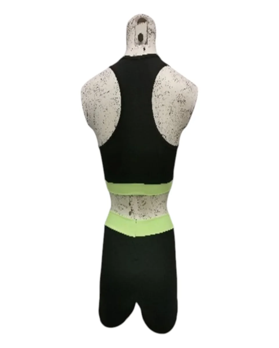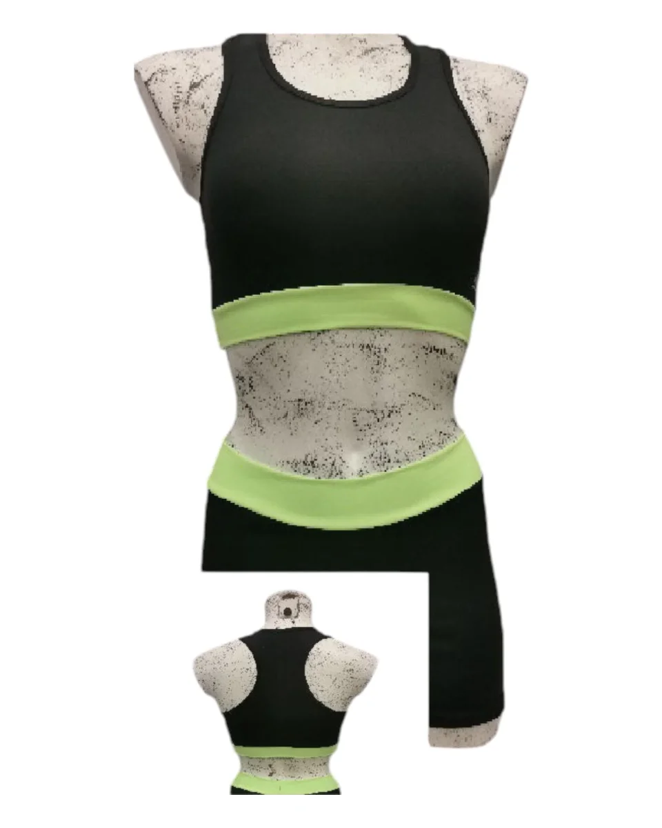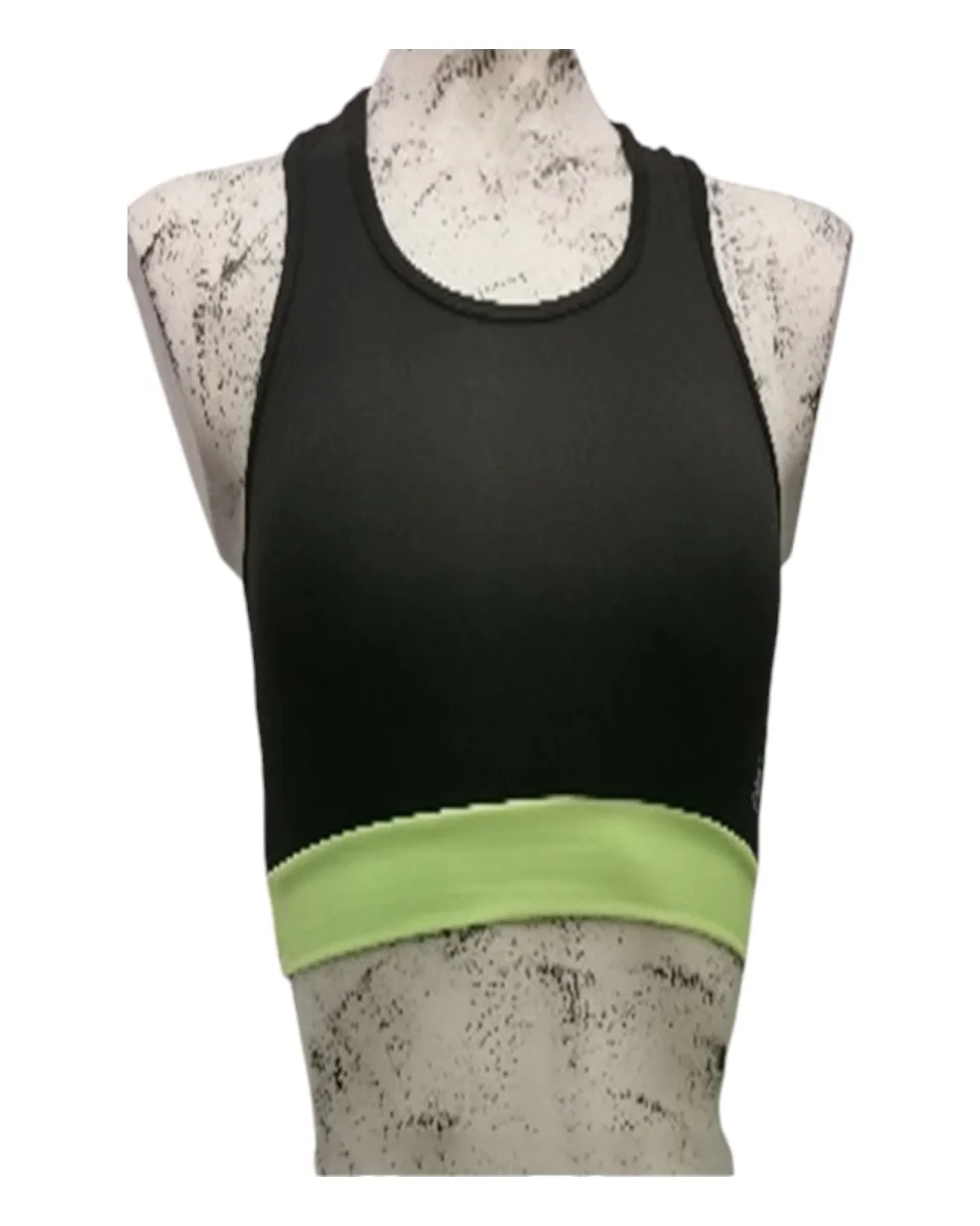 Completamente made in Italy, questo top presenta una base nera elegante con fasce in tinta contrastante e offre la possibilitร di scegliere tra varianti di colore come giallo, fucsia e verde, per adattarsi a ogni stile e preferenza.