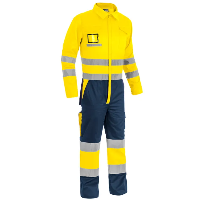 Tuta da lavoro ad alta visibilità catarifrangente, realizzato in 60% cotone e 40% poliestere, 240g/m2.
