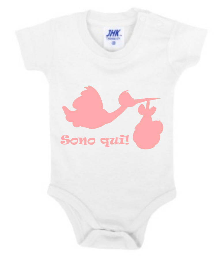Tutina per neonati 100% con grafica impressa direttamente sul tessuto.