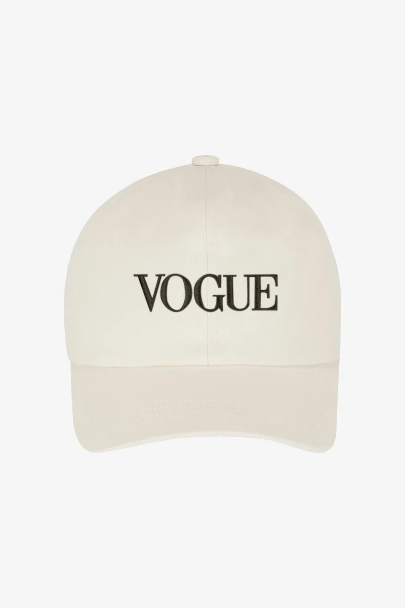 VOGUE Cap in cream with logo embroidery in black, made from 100% organic cotton.