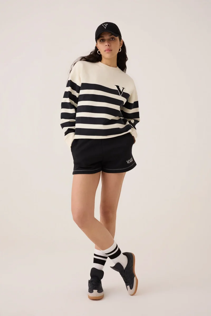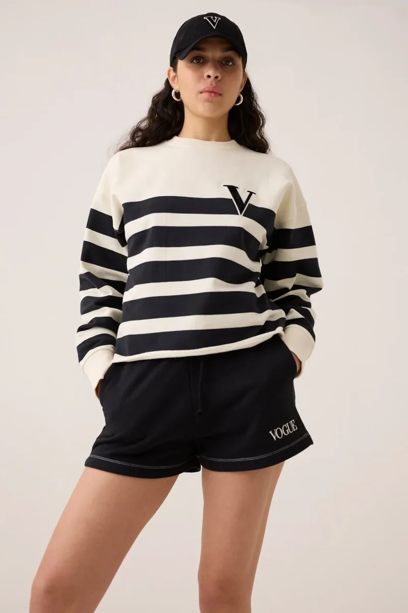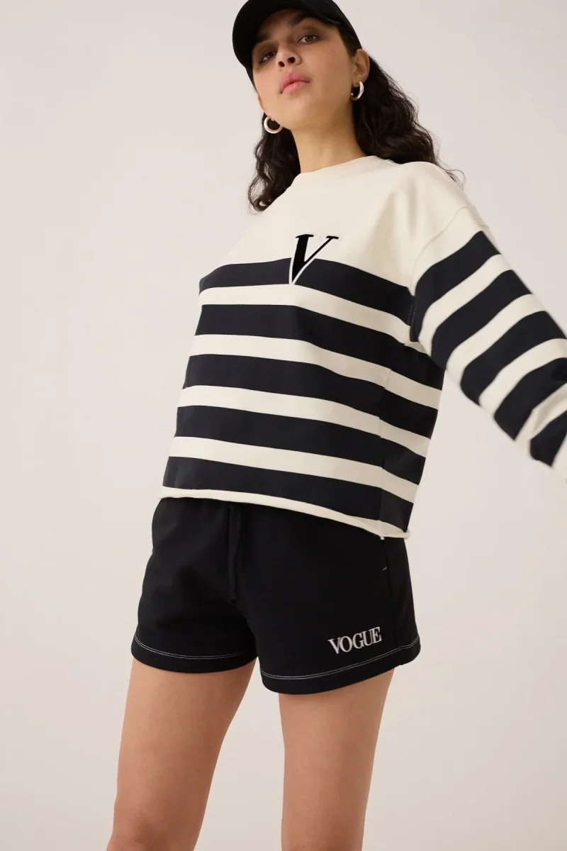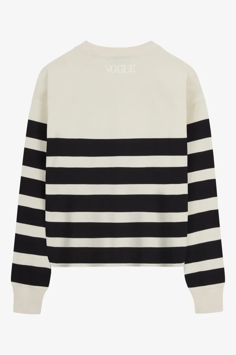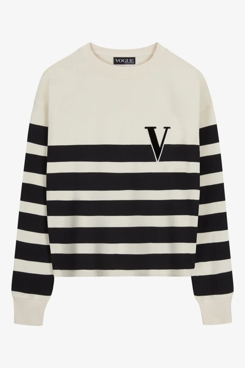 VOGUE Cream Striped Sweatshirt Black Velvet Patch