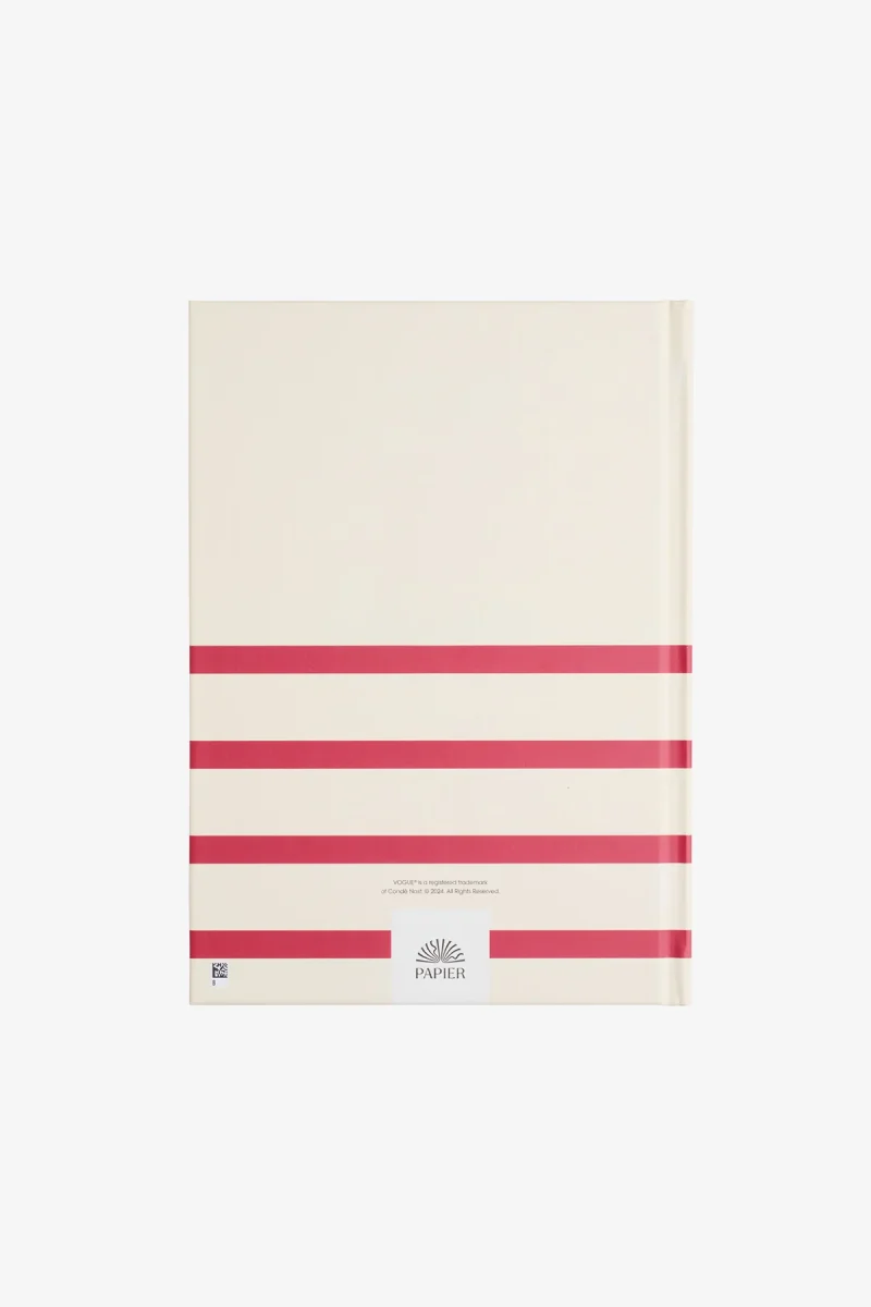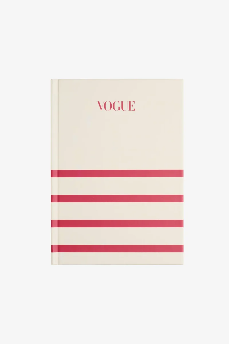 The VOGUE hardcover notebook is made in the UK. – High-quality striped cover– 15 x 21.5 cm– 192 pages of premium paper– Paper sourced from sustainable forestry Discover the VOGUE notebook in additional colors such as green, black, and plum.