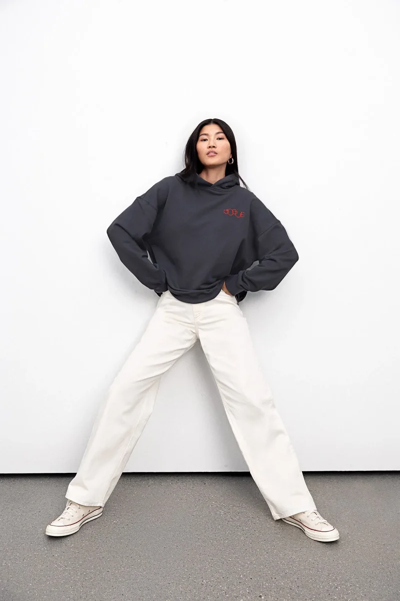 The VOGUE Hoodie, featuring overcut shoulders and soft cotton quality, is ethically produced in Portugal.