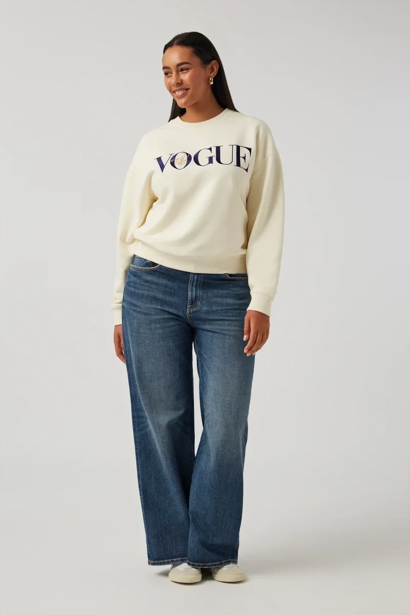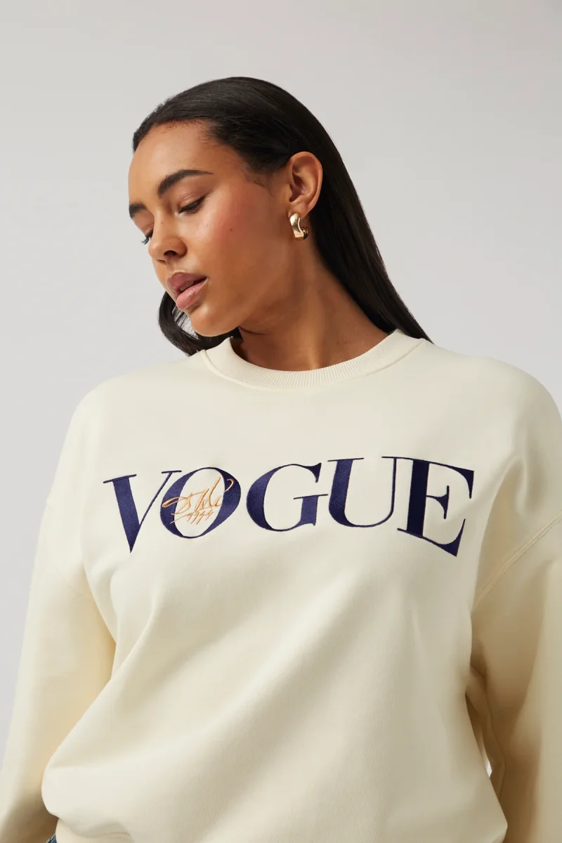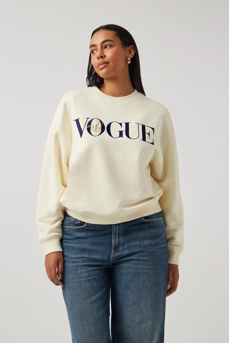 VOGUE sweatshirt in cream with Vogue cover print, made from 100% organic cotton.