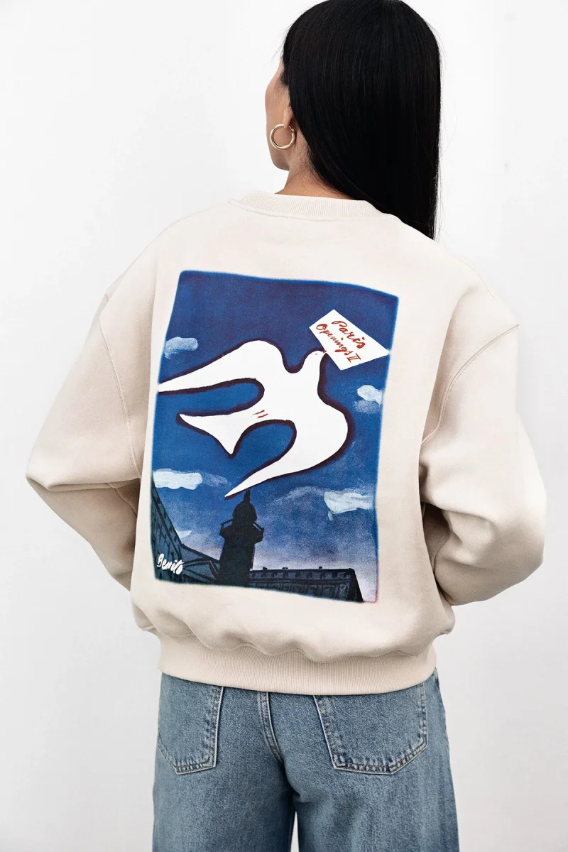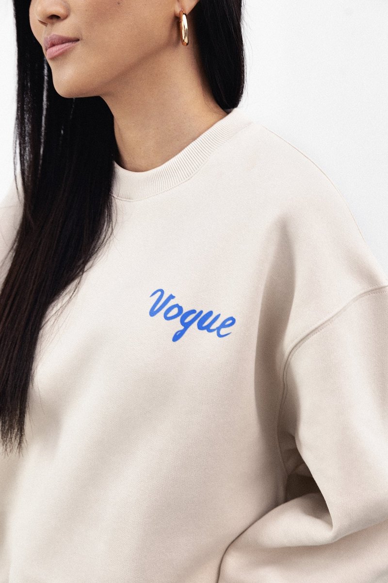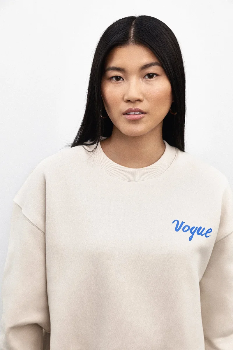 VOGUE Sweatshirt in ecru with VOGUE cover print, made from 100% organic cotton.