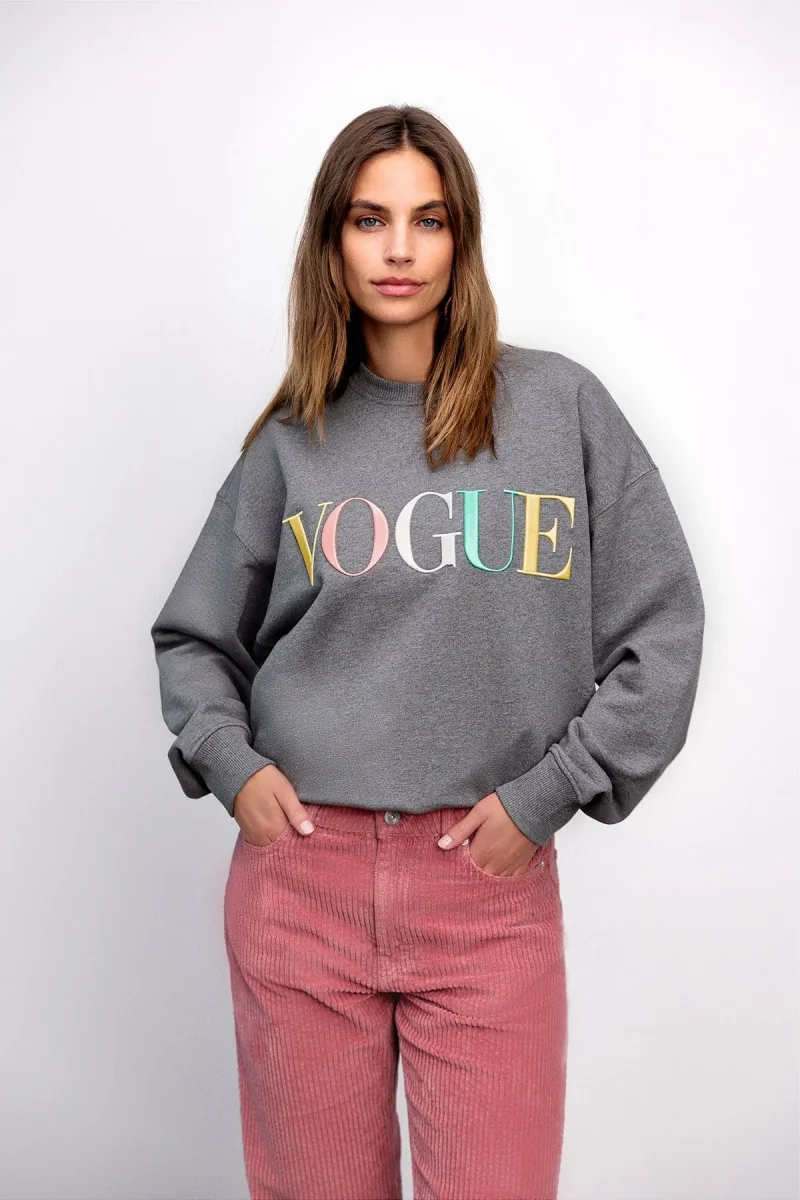VOGUE Sweatshirt Gray Embroidered Colorful Logo