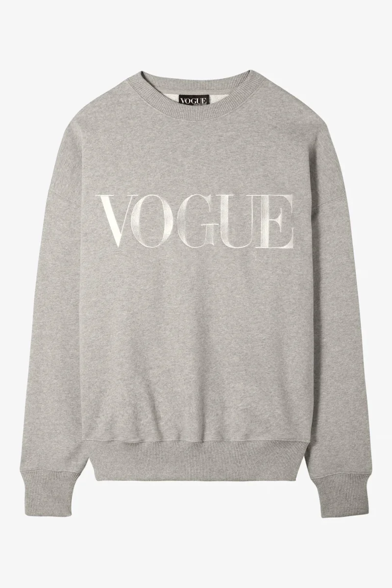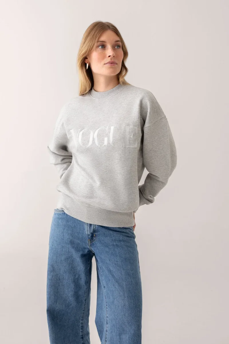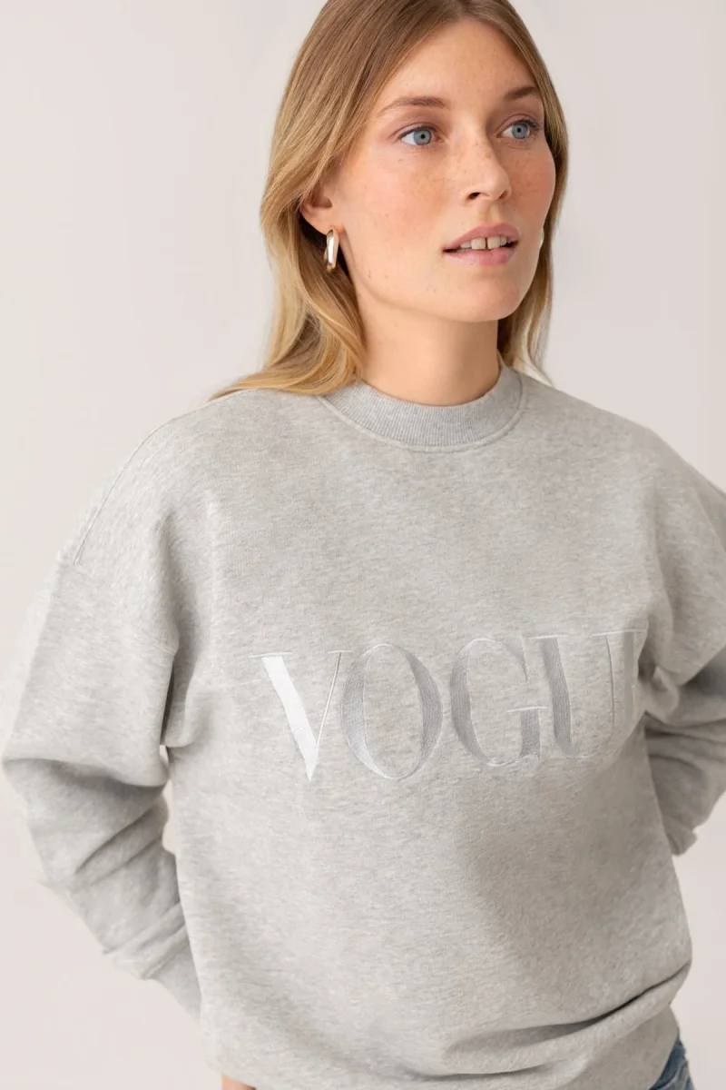 VOGUE Sweatshirt in gray with tonal logo embroidery, made from 100% organic cotton.