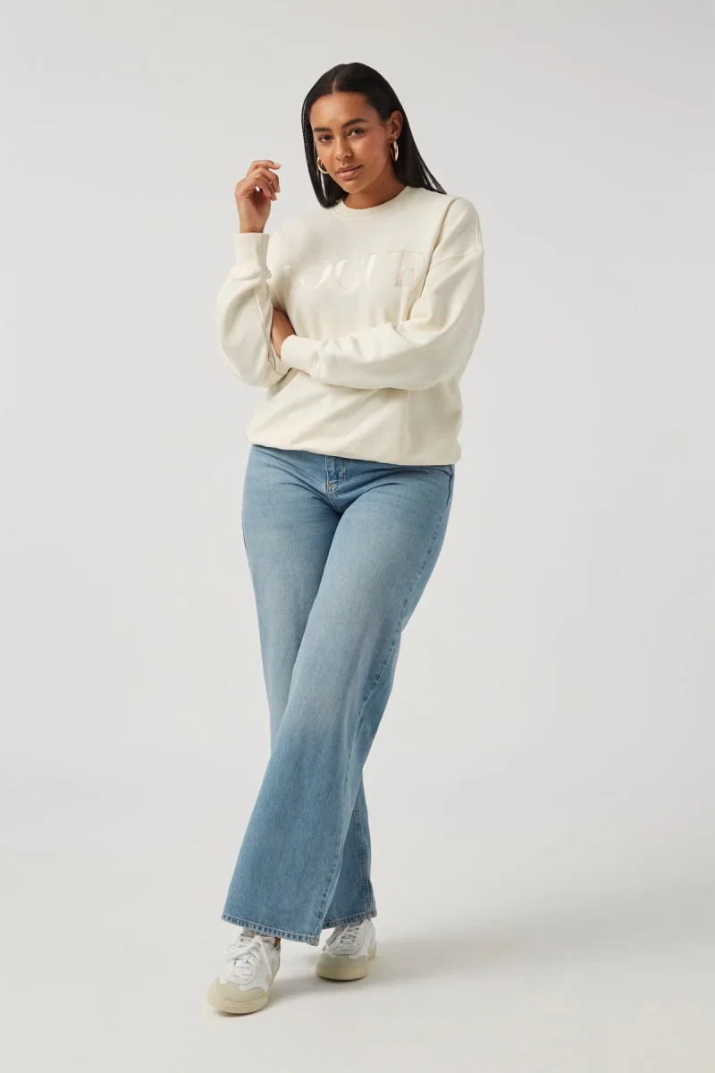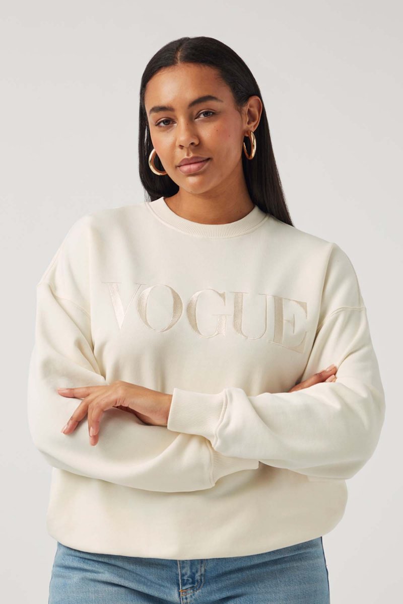 VOGUE Sweatshirt in pearl with tonal logo embroidery, made from 100% organic cotton.