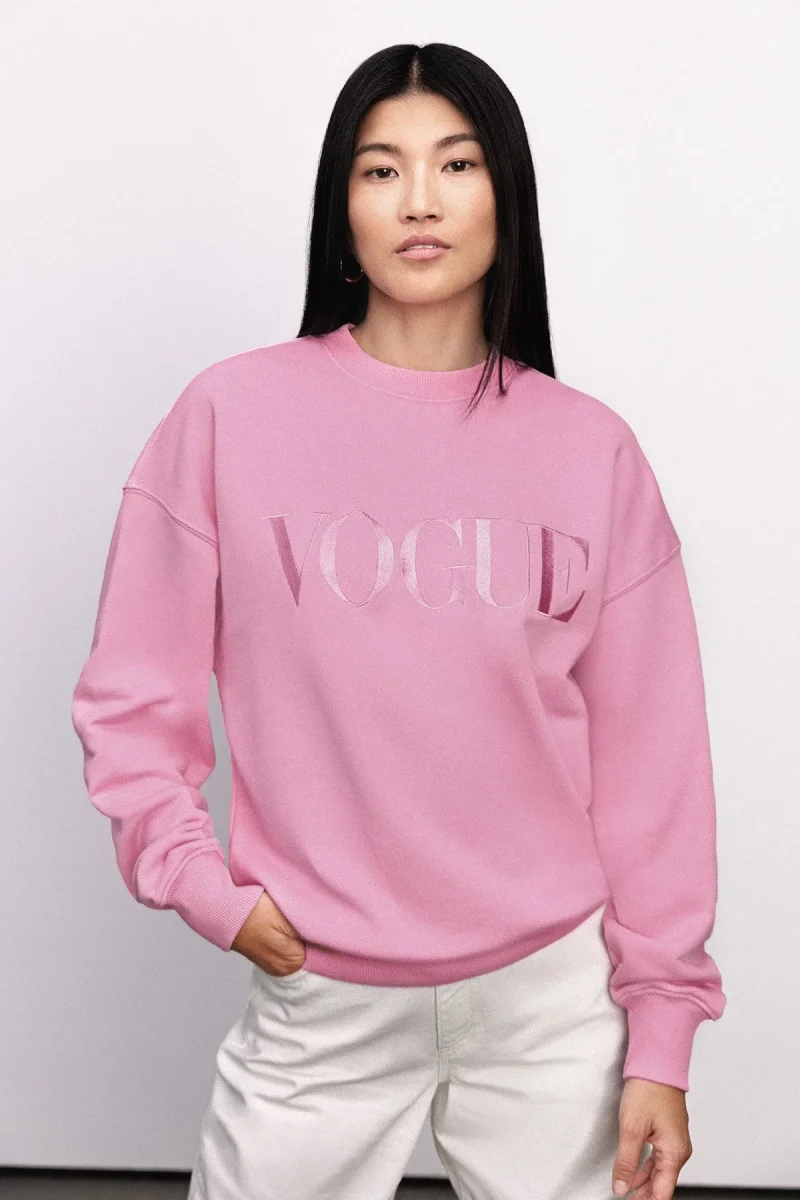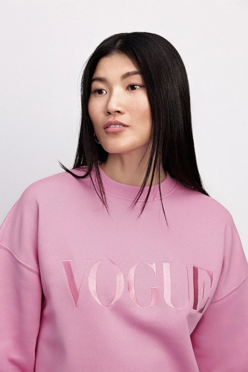 VOGUE Sweatshirt in pink with tonal logo embroidery, made from 100% organic cotton.