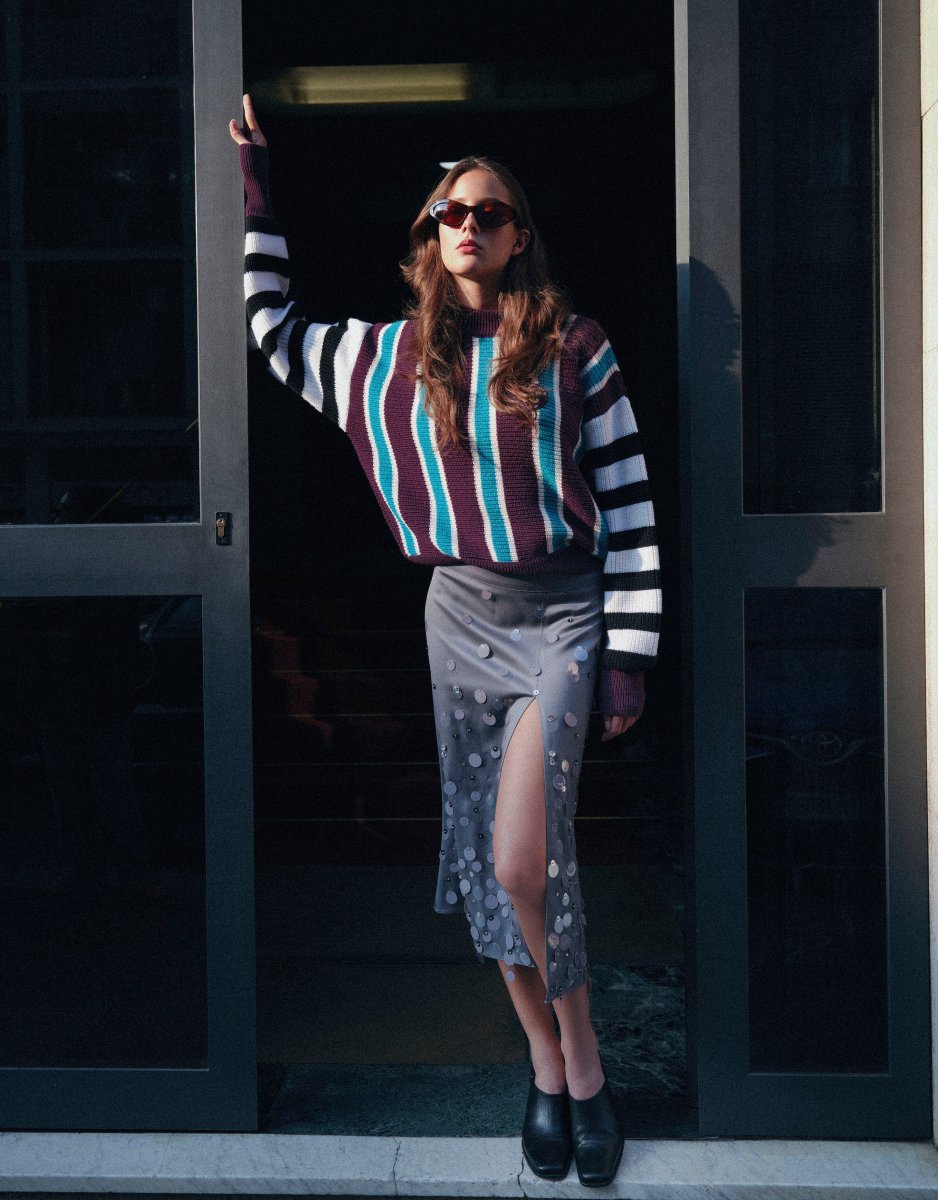 Experience timeless elegance with the Willow Sweater, a plush and comfortable wool and cashmere round-neck striped sweater meticulously crafted to elevate any chic outfit. Its soft texture ensures all-day comfort, while the logo patch adds a subtle yet distinctive detail, reflecting understated sophistication. Perfect for layering or wearing on its own, this sweater effortlessly combines […]