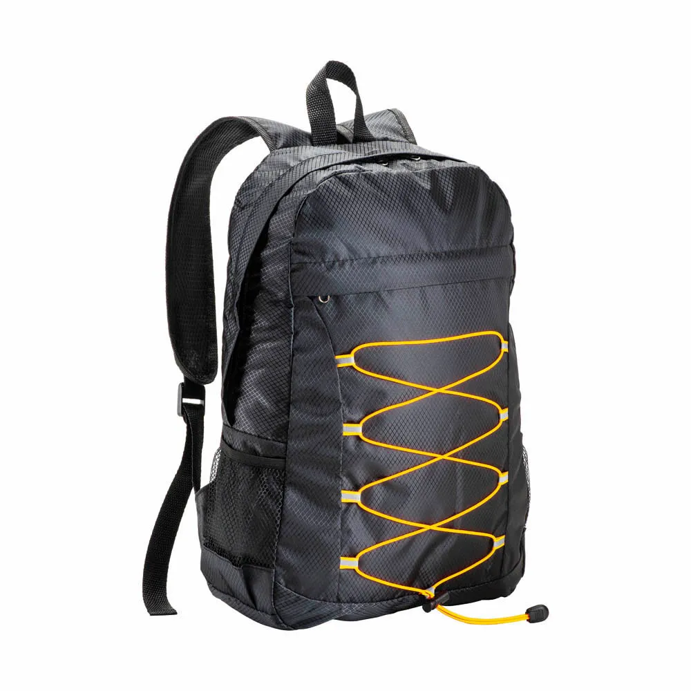 Zaino in poliestere RIPIEGABILE, con 4 tasche di cui 2 laterali, ideale per fare sport o per brevi viaggi, peso netto circa 0,21Kg, dimensioni 43x29x11,5cm.