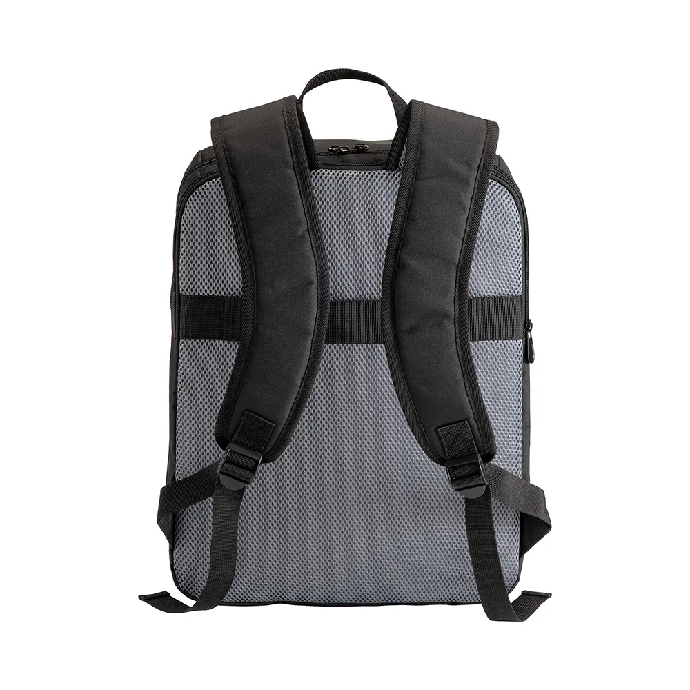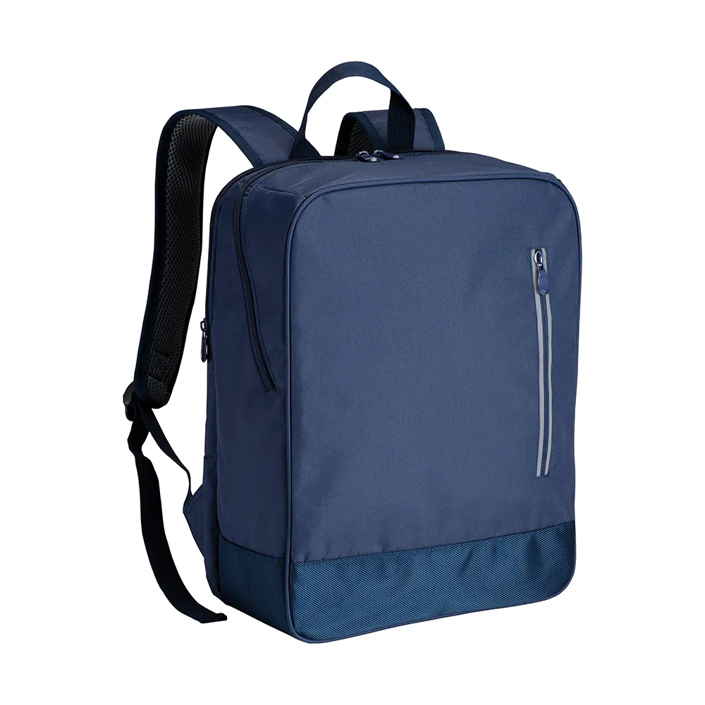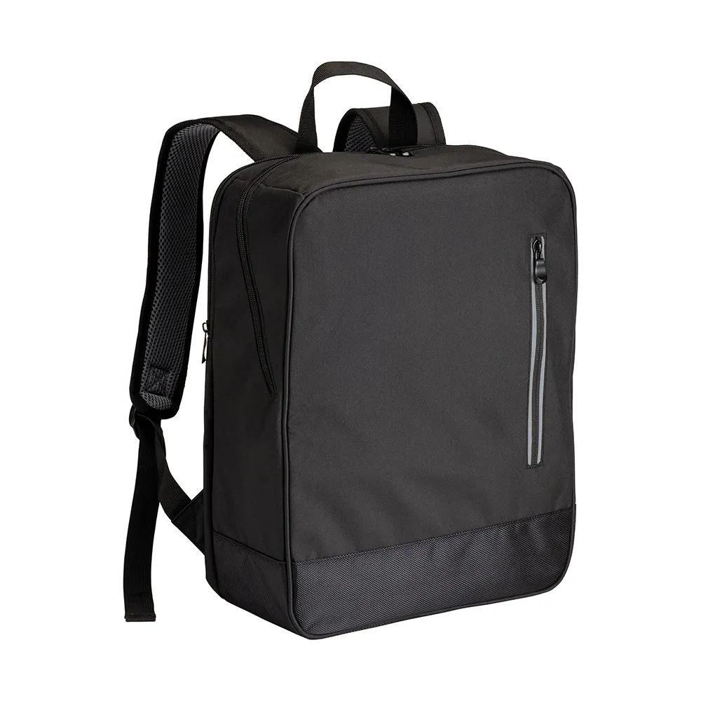 Zaino porta computer in poliestere 300D con base in nylon balistico antistrappo e antiabrasione, tasca imbottita porta PC sul retro e tasca frontale catarifrangente. Schienale e spallacci imbottiti con materiale traspirante. Prodotto molto adatto per chi viaggia spesso in moto/scooter/bicicletta o anche a piedi.